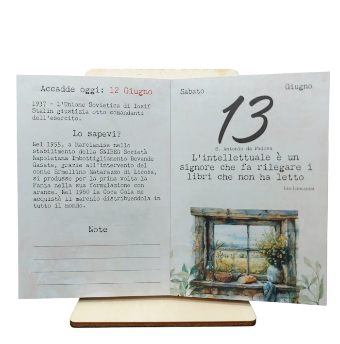 Calendario Letterario del Buongiorno 2026, con supporto in legno.
