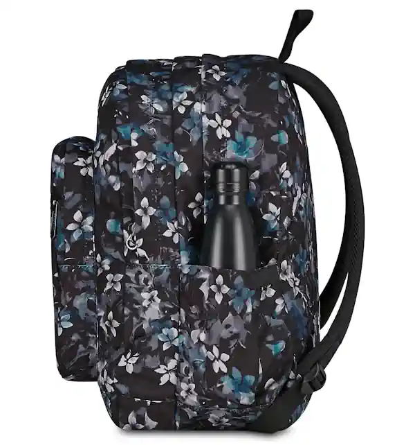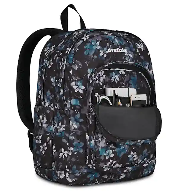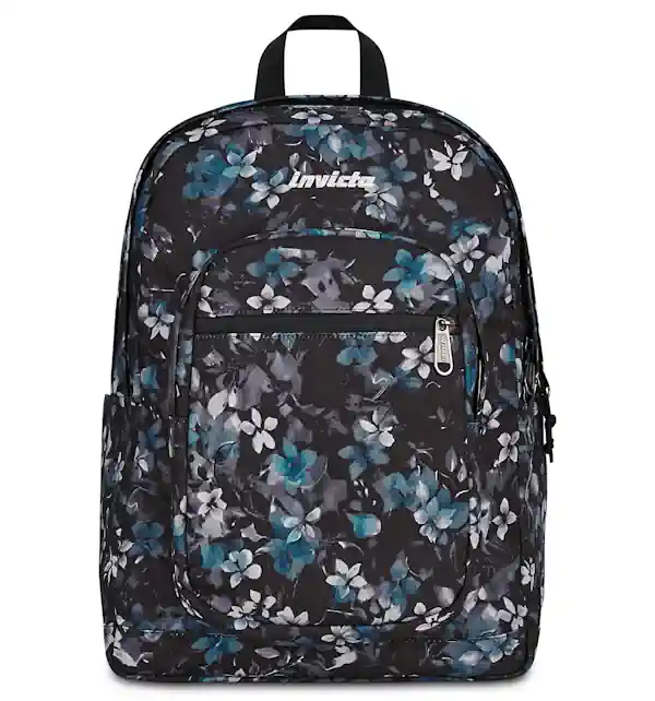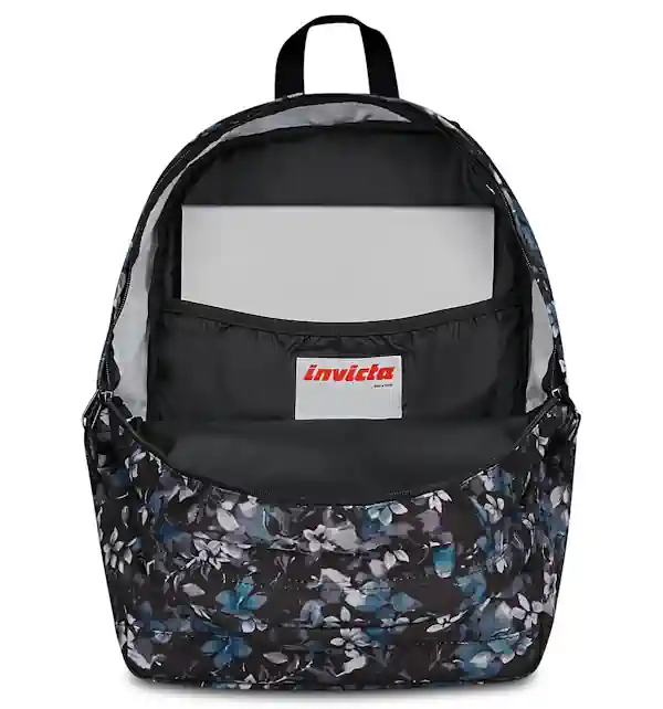 Zaino Invicta Jelek Fantasy Grs Backpack, fantasia a fiori verdi su sfondo nero.