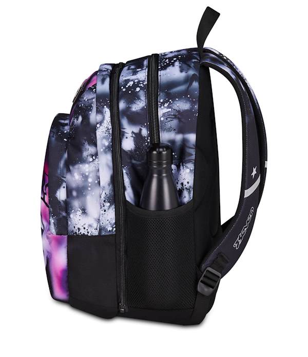 - Tasche laterali: una con zip per oggetti sicuri e una in rete porta borraccia